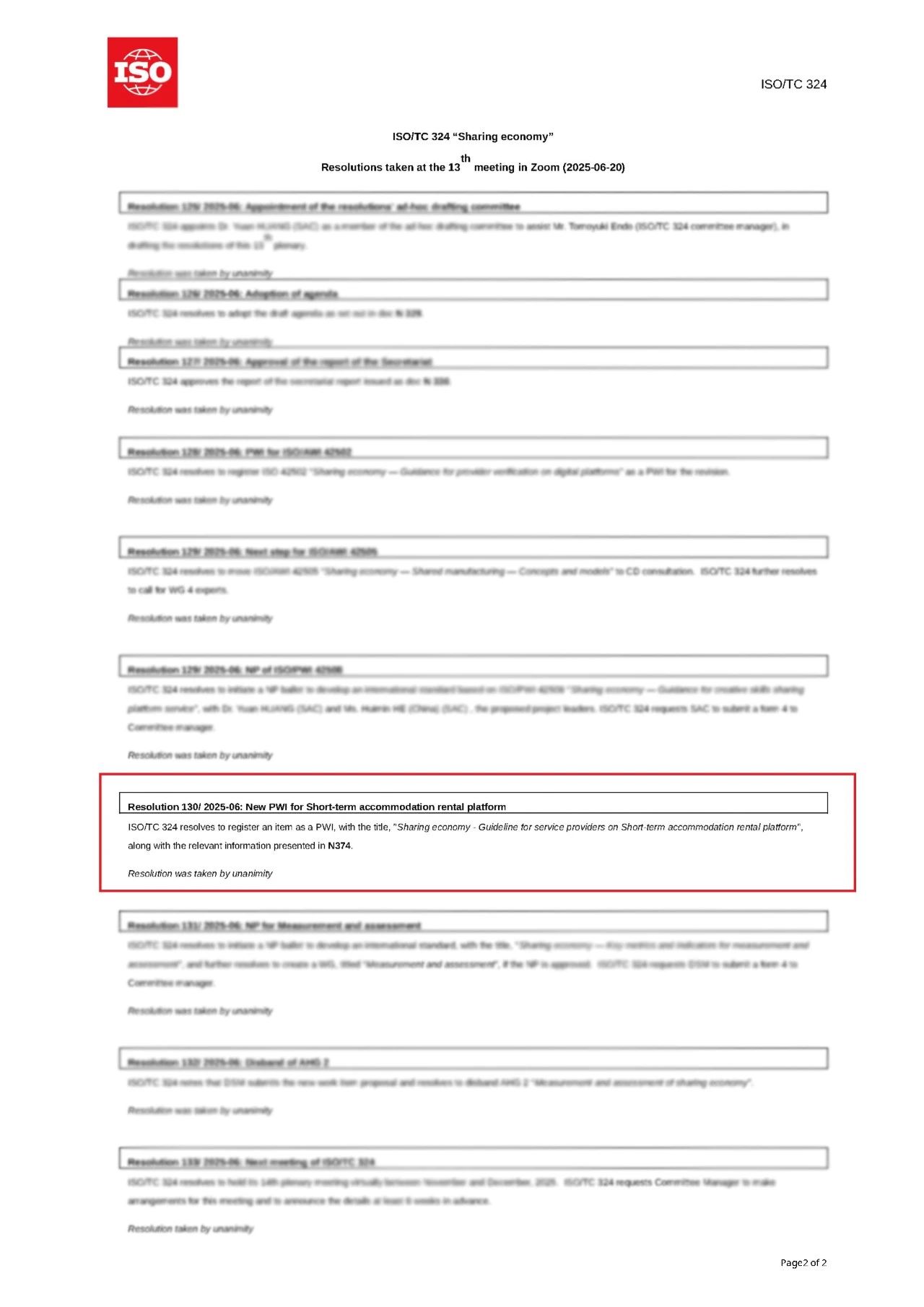 近日,國(guó)際標(biāo)準(zhǔn)化組織共享經(jīng)濟(jì)技術(shù)委員會(huì)(ISO/TC 324)正式批準(zhǔn)《共享經(jīng)濟(jì)——短期住宿租賃平臺(tái)服務(wù)提供者指南》成為預(yù)工作項(xiàng)目(PWI),這一突破性進(jìn)展標(biāo)志著中國(guó)首個(gè)民宿服務(wù)類國(guó)際標(biāo)準(zhǔn)提案成功進(jìn)入ISO國(guó)際標(biāo)準(zhǔn)制定流程。